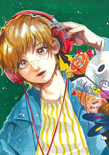 天才の作詞だったり、甘ったるい言葉、くさい台詞etc. 日常を彩る音楽をイメージして描きました。