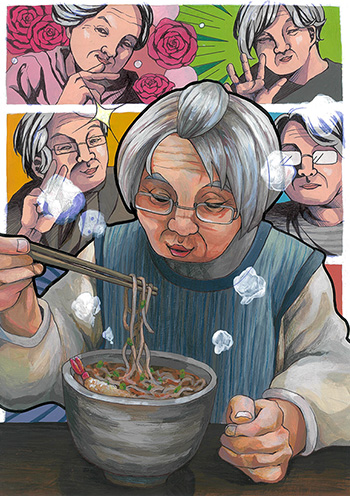 私のおばあちゃんを色んな人にいいね!って伝えるためにかきました。どんな姿でもどんなに歳をとっても、かわいいねすてきだね、イイネって思います。ずっと年越しそば食べれますように!!